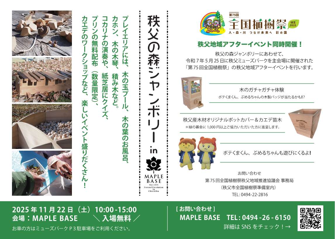 秩父市木育おもちゃセットを活用したイベント等(ただし、利用申請時に公表可のご連絡をいただいたものに限る)をお知らせします。