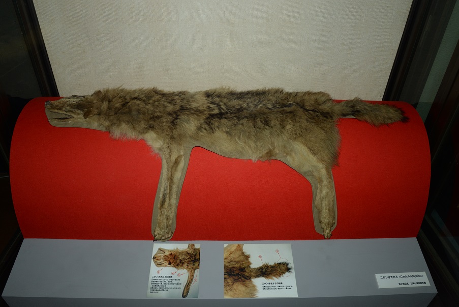 秩父地域周辺の民家には、江戸時代から明治時代にかけて秩父山地で獲られたと伝わる毛皮や頭骨などが複数残されている。これらは魔除けなどに利用されたもので、秩父地域の風習を伝える民俗資料であるとともに、オオカミを祀る三峯神社に代表される地域の信仰や、人々とオオカミとの結びつきを示す資料でもある。三峰山博物館では、二ホンオオカミの毛皮標本を2点所蔵、公開している。