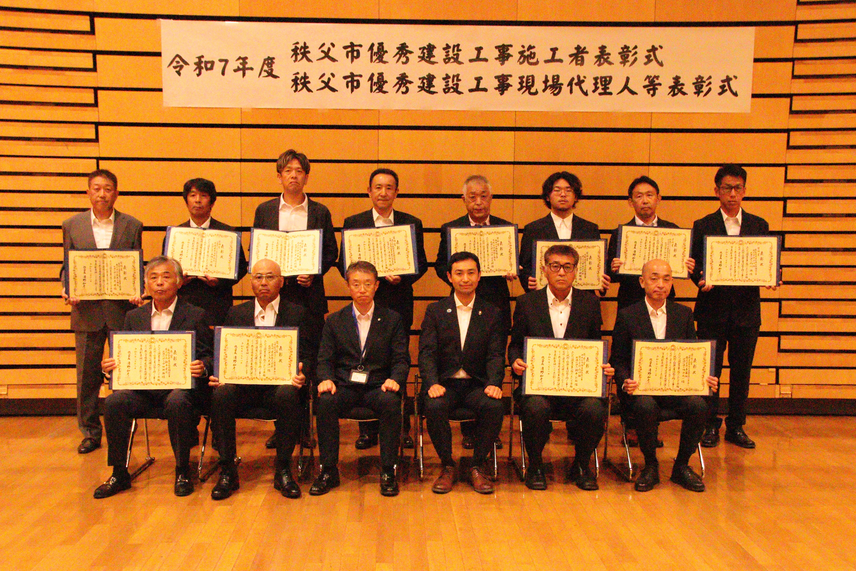 令和7年8月18日(月)に、歴史文化伝承館2階ホールにて「秩父市優秀建設工事施工者及び現場代理人等表彰式」が行われました。