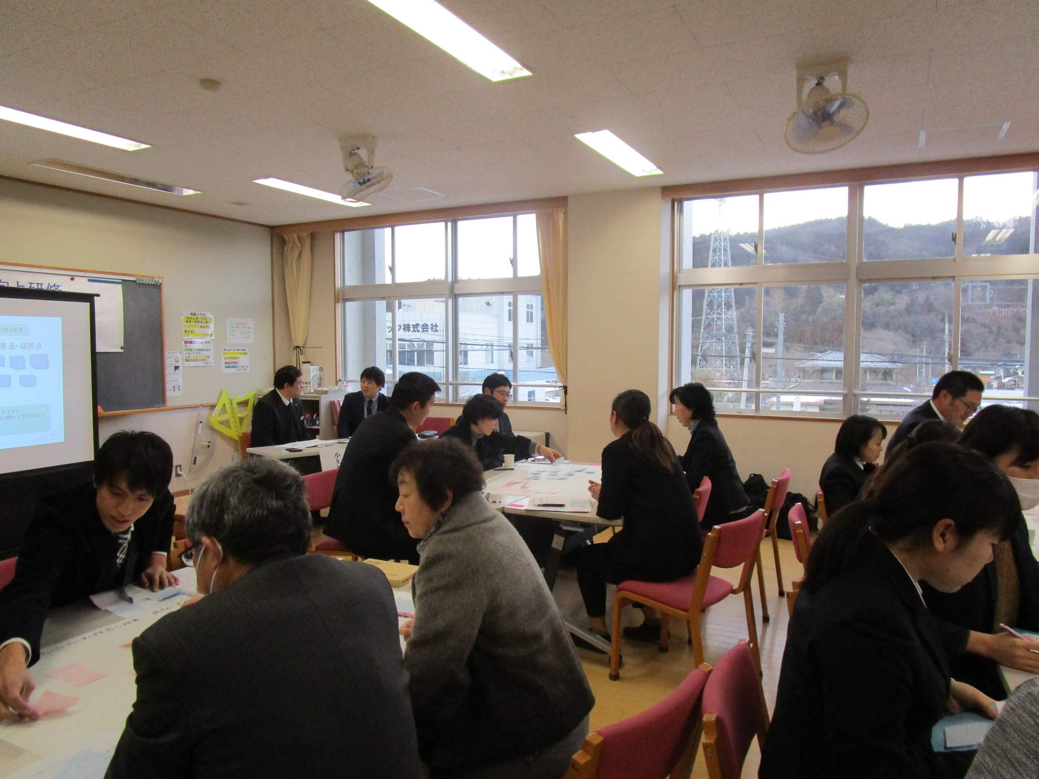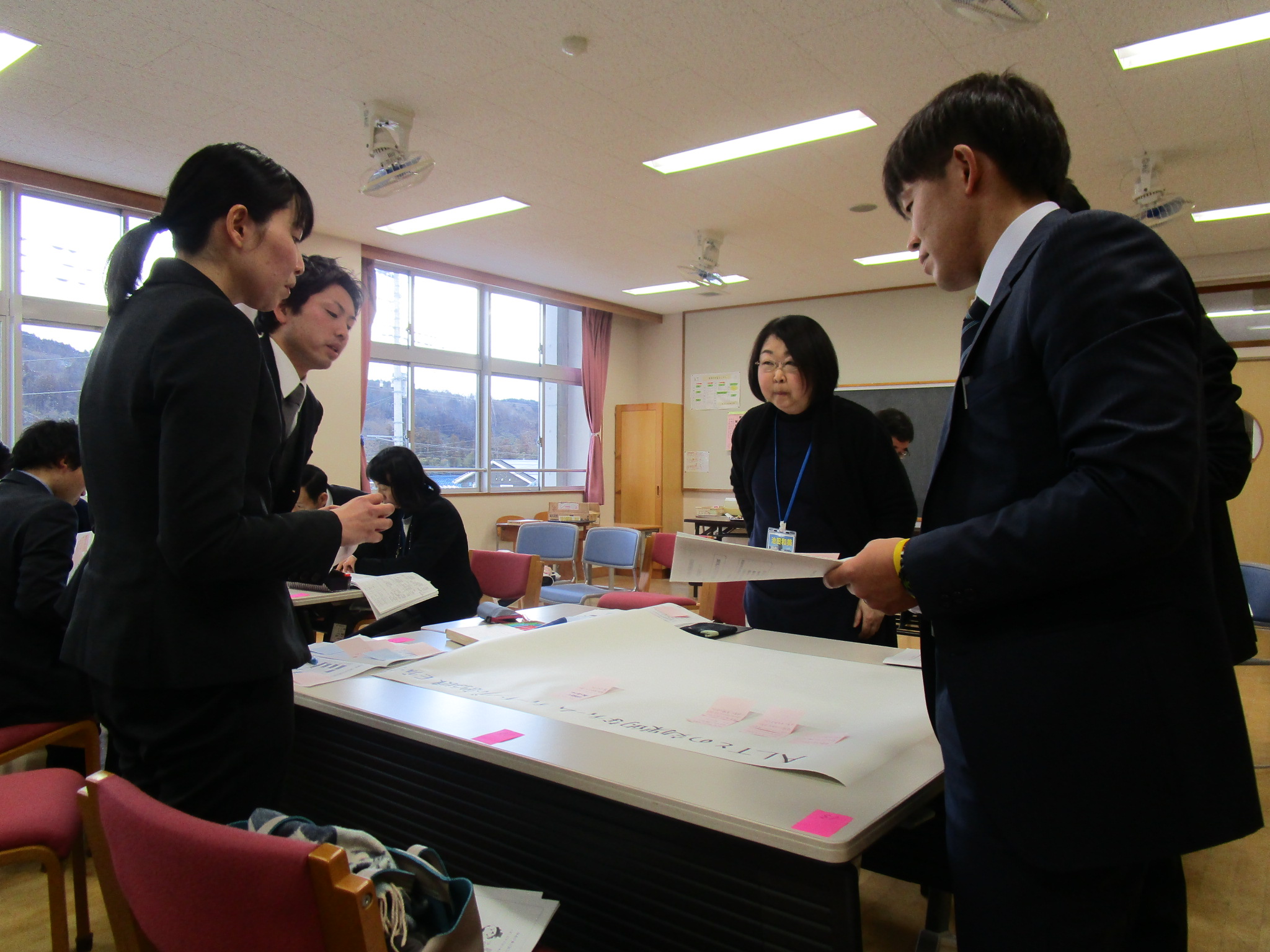 ワークショップ形式のグループワークで、授業の良かった点、課題点を出しないながら、よりよい指導方法についてのアイディアを出し合いました。参加した先生たちからはよりよい指導方法について積極的に意見が出され、話し合いが深まりました。その後ポスターセッション方式で各グループで話し合われた意見のアイディアを共有しました。