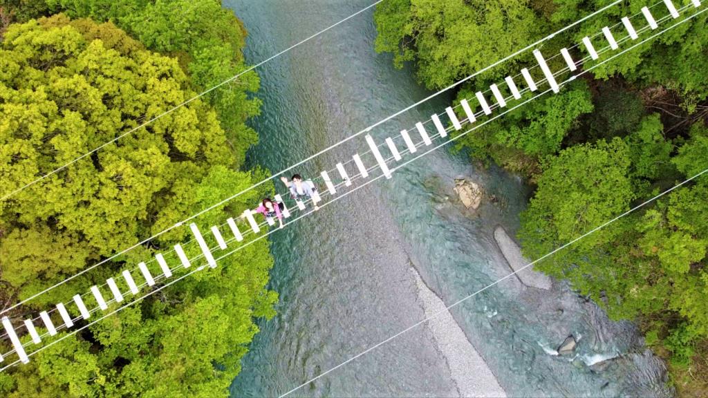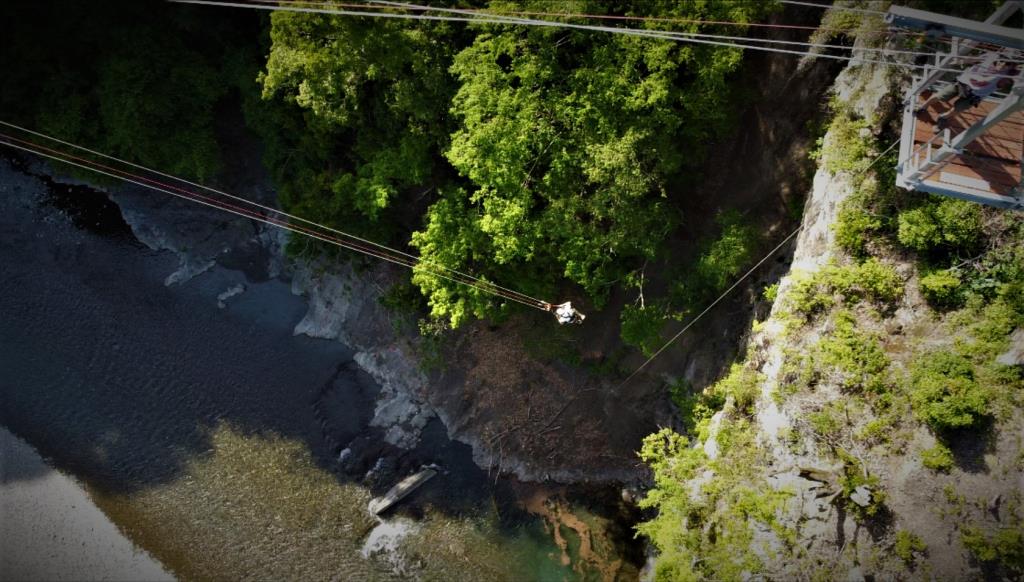 キャニオンフライは、キャニオンウォークと並行して架設されたワイヤーに吊り下がって滑空するアクティビティ。(ジップライン)