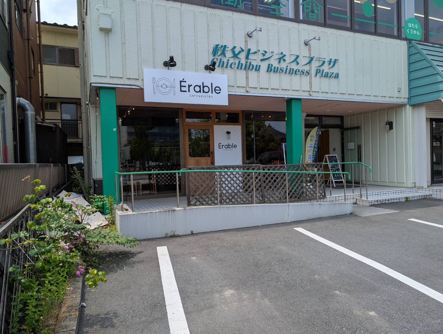 お店は、秩父ビジネスプラザの1階にあります。西武秩父駅から徒歩3分の好立地で、秩父市役所の前、おもてなしTVスタジオの横に位置しています。ランチタイムにはパスタやハンバーグなどのカフェランチの定番メニューを提供し、夜は雰囲気を一変させて、炭火の香ばしい香りが食欲をそそるお肉料理を楽しめるビストロスタイルのお店です。厳選したワインや各種お酒も取り揃えています。