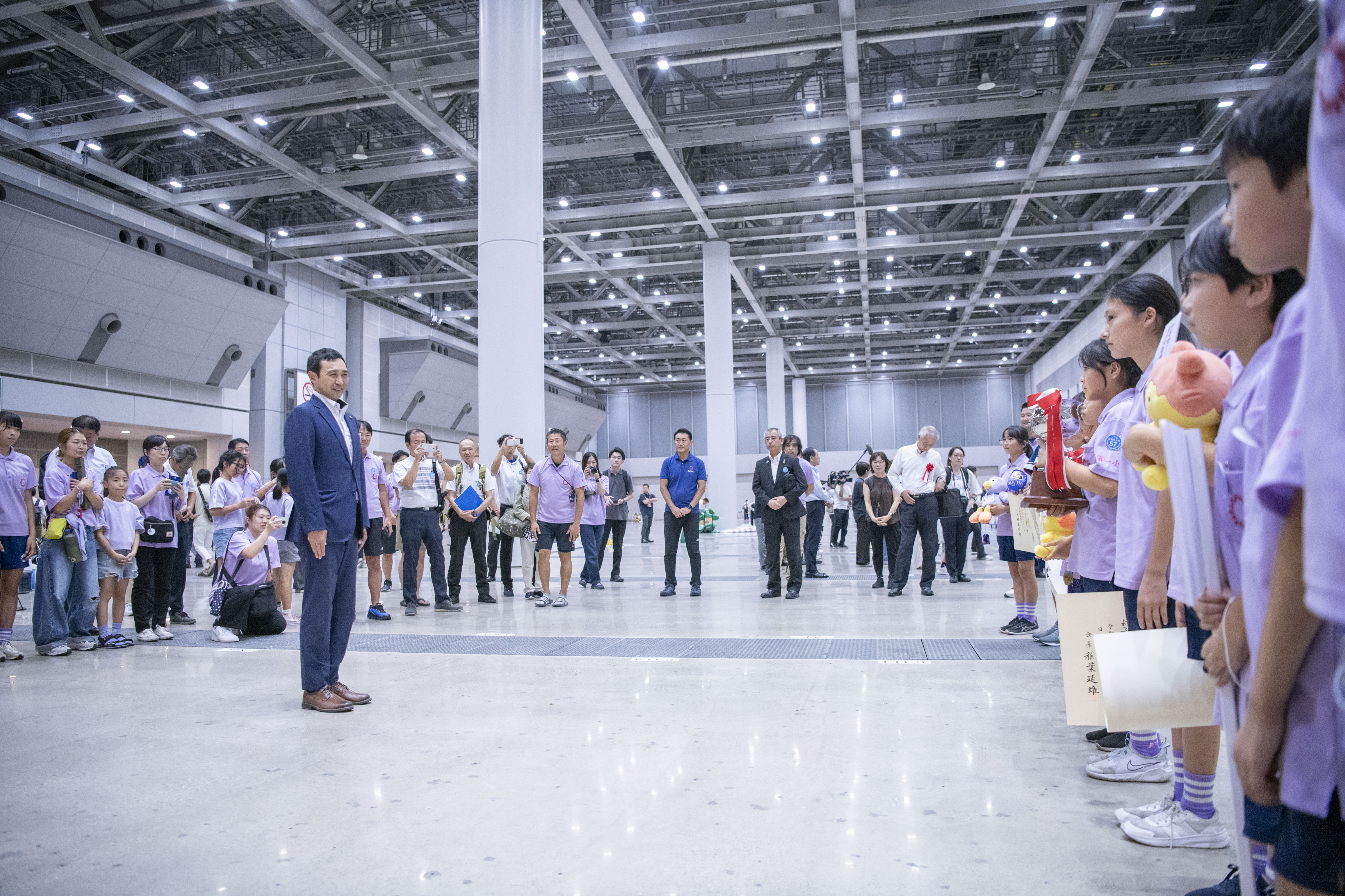 全国大会当日、私もビッグサイトに応援に駆け付けました。緊迫した雰囲気の中、競技に取り組む秩父第一小学校の児童たちの姿には、頼もしさすら感じました。彼らが一つの目標に向かってチームで心を一つにし、励まし合いながら競技に真剣に取り組む姿には、心を打たれ、感動を覚えました。この経験は何物にも代えがたい貴重なものになると信じています。