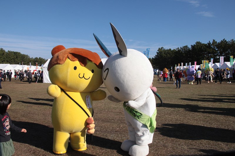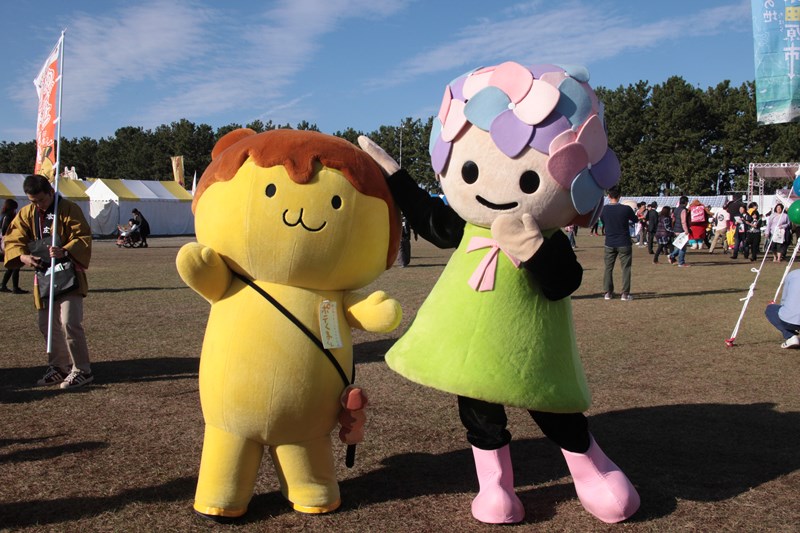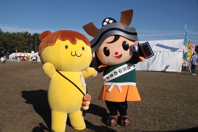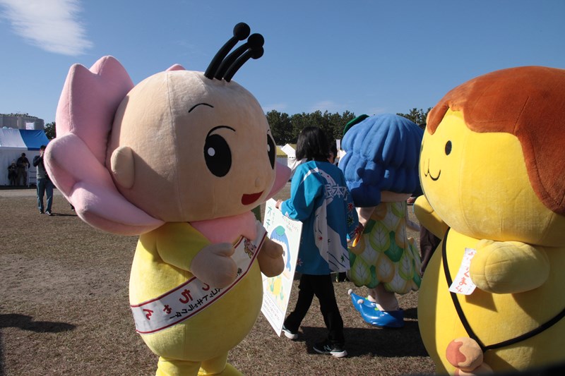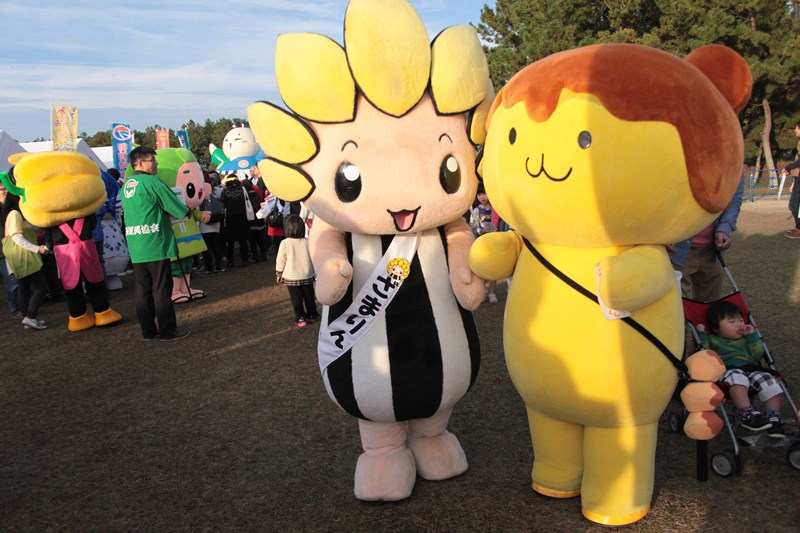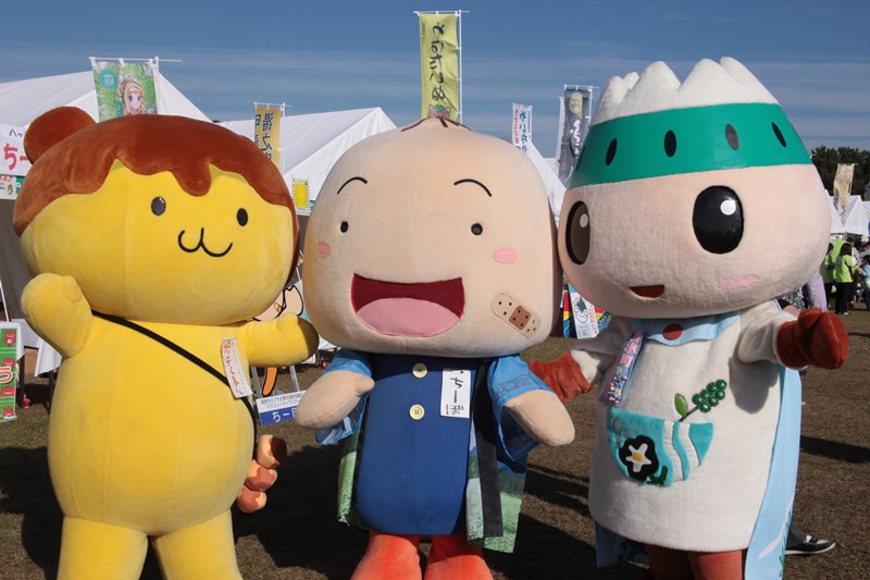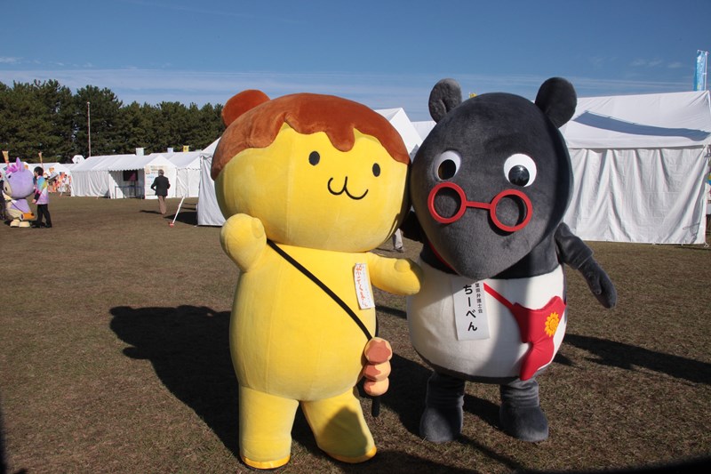 「ちーぼ」(長野県茅野市子ども会育成連絡協議会)と「ゆうすいくん」(静岡県清水町)。ちーぼ、口あいてるよ。