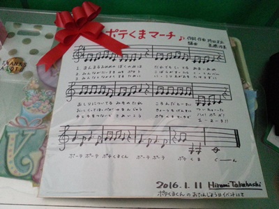 お誕生会で披露された「ポテくまマーチ」。新聞にも取り上げられて、オリコンチャート急上昇中!(ウソ)