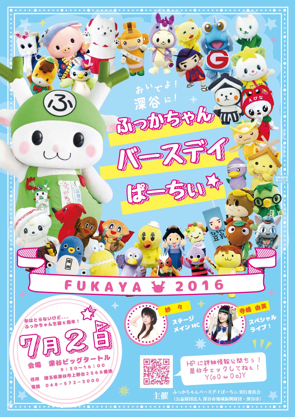 「ふっかちゃんバースデイぱーちぃFUKAYA 2016」は7月2日(土)、場所は深谷市総合体育館(ビッグタートル)だよ!